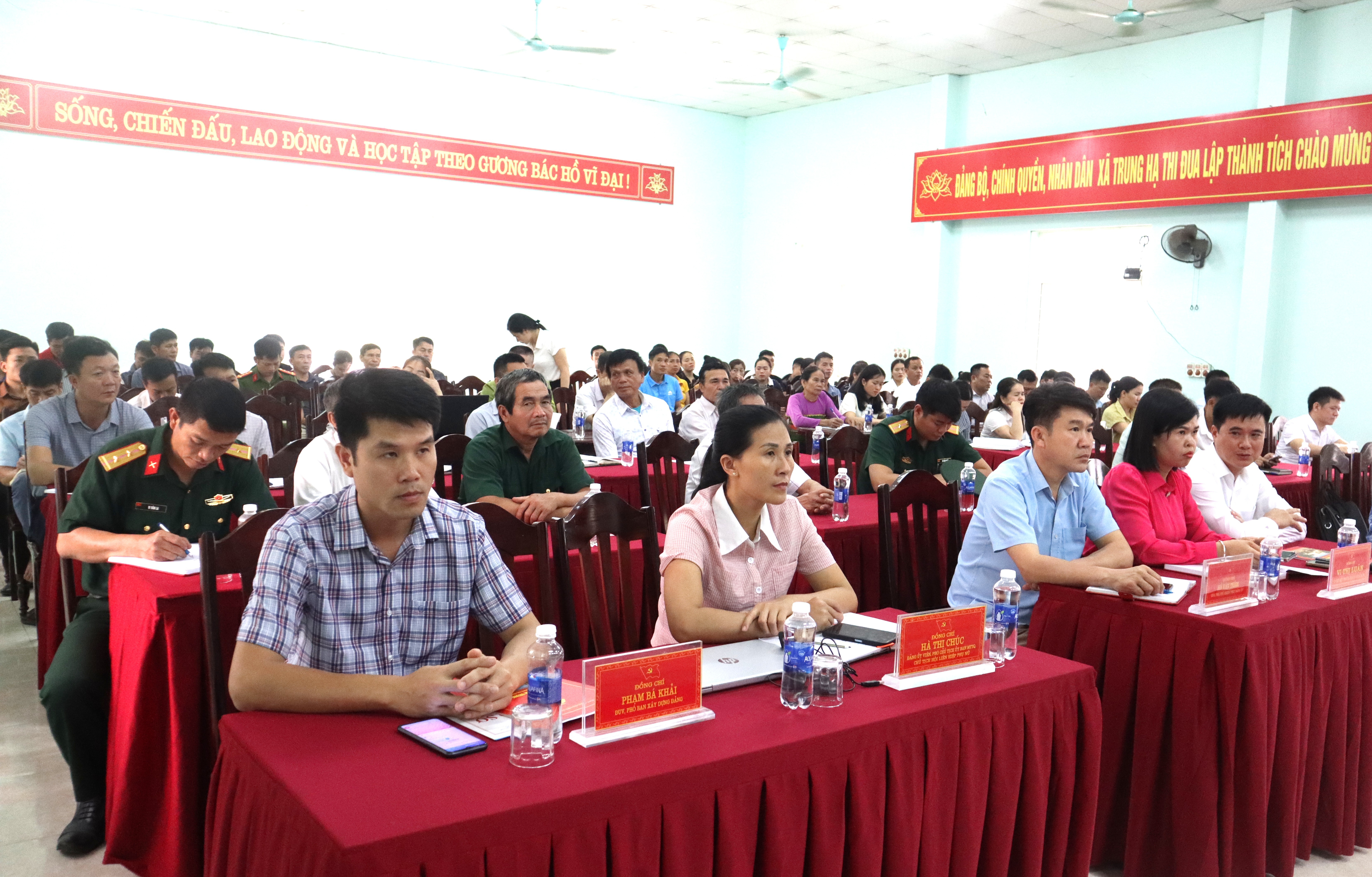 Tham dự Khai giảng lớp bồi dưỡng có đồng chí Nguyễn Thị Lan – Ủy viên BCH Đảng bộ xã Quan Sơn, Giám đốc Trung tâm Chính trị xã; đồng chí Lê Thị Nghĩa, đồng chí Hà Thị Quyến – Giảng viên Trung tâm Chính trị xã. Về phía Đảng ủy xã Trung Hạ có các đồng chí Hà Văn Mới - Phó Bí thư Thường trực Đảng ủy; các đồng chí trong Ban Thường vụ Đảng ủy; lãnh đạo các ban, phòng, ngành Mặt trận tổ quốc và các đoàn thể chính trị xã hội và hơn 200 học viên là các cán bộ, đảng viên của các bản, tiểu khu trên địa bàn.